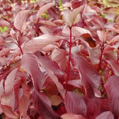 Дёрен красный выделяется из-за своих ярко-красных побегов, особенно в весенний период, когда цвет становится особенно насыщенным. Это добавляет особый шарм вашему саду и делает его заметным на фоне других растений.