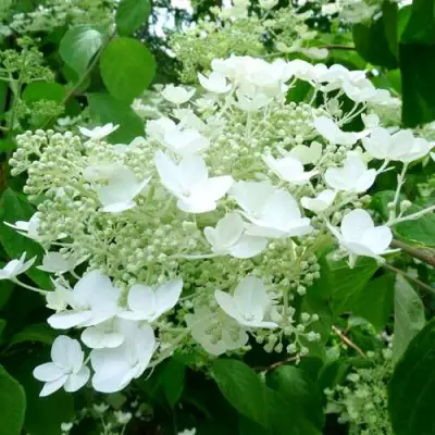 Гортензия древовидная Уайт дом описание которой подчеркивает её изысканность, обладает щитковидными соцветиями диаметром до 25 см. Они имеют форму слегка выпуклого купола и состоят из двух типов цветков: мелкие плодущие цветки в центре имеют кремовато-белый оттенок, а по краям их окружают белоснежные стерильные цветки диаметром до 2 см. Такое сочетание придает кусту легкий, ажурный вид. Цветение начинается в июне и продолжается до сентября, сопровождая садовое пространство приятным ароматом. Обильное появление бутонов происходит на побегах текущего года, что гарантирует стабильную красоту растения из года в год.