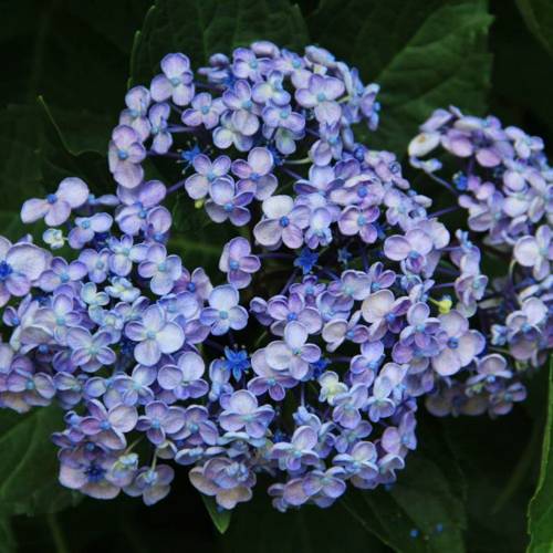 Цветение очень продолжительное — с июля и до самых заморозков. Уход несложный: главное — правильно выбрать место (полутень) и обеспечить регулярный полив. Моя 'Аиша' хорошо зимует под легким укрытием. Я использую кислые подкормки для поддержания яркого голубого оттенка, и результат превосходит все ожидания. Определенно рекомендую тем, кто ищет необычную, ароматную и благодарную гортензию!