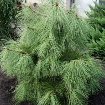 Сосна желтая - растет медленно, в молодом возрасте конической формы. Через 30 лет в высоту достигает более 10 м, а в ширину 2-3 м. Толстые и жесткие побеги — желто-коричневые, а иногда даже оранжевые, лимонные, издают приятный лимонный аромат. Иглы зеленого цвета, очень длинные (до 25 см).