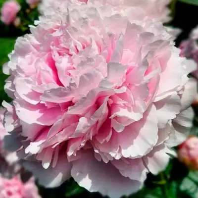 Цветки сорта "Монинг Кисс" представляют собой махровые розовидные шары диаметром до 18 см. Нежно-розовая окраска с более светлыми краями создает атмосферу легкости и романтики, а желтые тычинки добавляют ярких акцентов. Аромат этих цветов настолько тонкий и нежный, что он станет ненавязчивым, но притягательным сопровождением любого уголка вашего сада. Двухцветная текстура лепестков делает их особенно привлекательными для тех, кто ценит разнообразие и стиль.