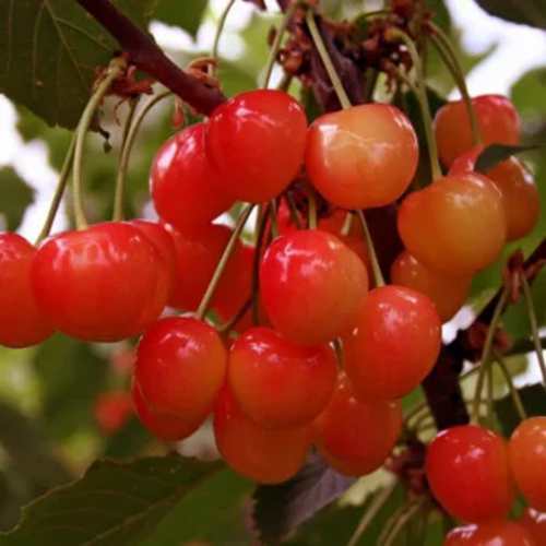 Приобретая саженцы черешни Дончанка, вы выбираете не просто фруктовое дерево, а настоящую находку для вашего сада. Этот сорт черешни был выведен талантливым ученым Л.И. Тараненко на Донецкой опытной станции в 1988 году благодаря скрещиванию семян известного сорта Дрогана желтая, произрастающего среди мелитопольских сортов. Черешня Дончанка славится своей универсальностью и высокой урожайностью, что делает её идеальным выбором как для любителей ягод, так и для тех, кто хочет получить стабильный доход от сада.Данный сорт отличается сильнорослым типом роста. В условиях хорошего ухода, к плодоносному периоду дерево может вырасти до 3,5 метров. Крона округлой формы придаёт саженцу аккуратный и ухоженный вид. Листья черешни крупные, зелёные, с яйцевидной формой и легким морщинистым рельефом, слегка заострённые на концах, что делает растение ещё более привлекательным. Цветки белые, а плоды – настоящая жемчужина вашего сада.