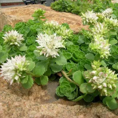 Седум Альбум радует своих владельцев обильным и продолжительным цветением с июля по начало августа. Его соцветия формируются в виде 3-5-разветвленных метелок, которые могут быть окрашены в нежные розовые или белоснежные тона. Эта яркая палитра привлекает внимание и создает атмосферу уюта и природной красоты вокруг.