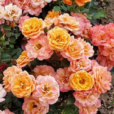 Цветок этой розы просто завораживает своей красотой. Он имеет оранжево-абрикосовую окраску, которая изменяется от розовой до яркой абрикосово-оранжевой. Цветки имеют вид зонтика, что придает им особую очаровательность. Средний размер цветка и его густомахровость делают эту розу настоящим украшением вашего сада.